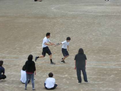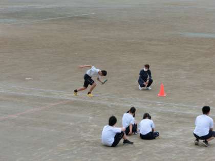 I組体育の授業。全員リレー、学年種目、最後に選抜リレーの練習をしました。