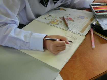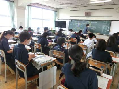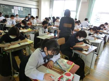 1年生地理の授業「領土・領海・領空」、美術の授業「レタリング」です。自分の名前の漢字を変えて表現していました。みんな上手にできています。
