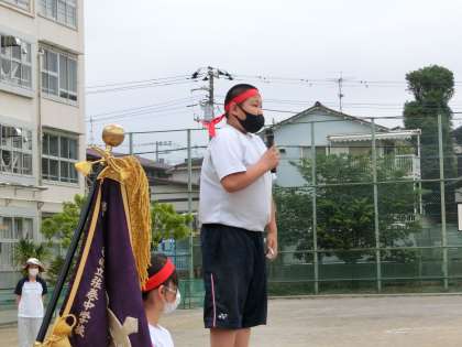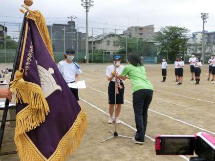 表彰式を行いました。I組とC組の体育委員が賞状と優勝カップをもらいました。最後は、閉会の言葉でした。頑張れ!!