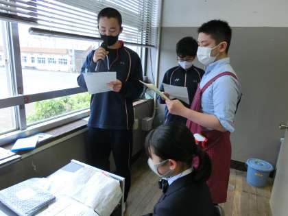 給食委員会ランチタイムスペシャル1 5月19日(水) 公開日 2021/05/20 更新日 2021/05/20 校長室より ランチタイムスペシャルがありました。旬の魚「アジ」を使ったアジフライやキュウリなど、旬のものの紹介してくれました。 いいね(0)