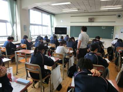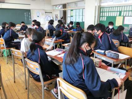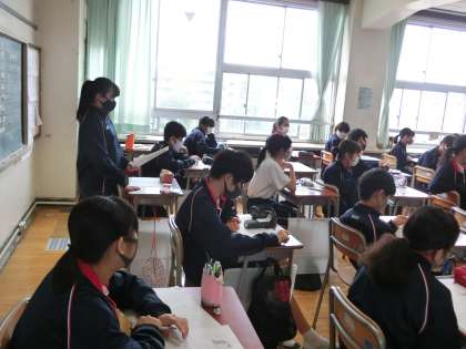 1時間目2年A組の日本語の授業参観をしました。テーマは「場面を伝えよう」でした。イラストを見て、それを人に伝えるための文を考えて、班で発表していました。一番わかりやすかった人がクラスで発表しました。どの発表も同じものはなく、とても分かりやすい表現でした。最後に、分かりやすく伝えるためにどうしたらよいか、それぞれ意見をまとめていました。