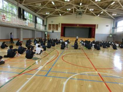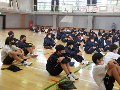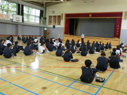 2年学年集会1 5月21日(金) 公開日 2021/05/21 更新日 2021/05/21 校長室より 6時間目2年生の学年集会がありました。6月3・4日に行くはずだった移動教室についてのお話でした。みんな真剣に聞いていました。今回予定していた移動教室は延期にし、2学期以降に世の中の状況を見ながら、再度実施に向けて検討をしていくことにしました。アンケートでのご意見等ありがとうございました。本日お手紙があるので、読んでください。 いいね(0)
