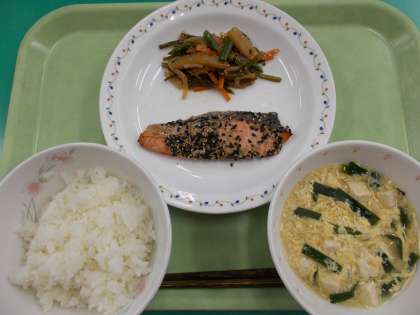 5月27日の給食 公開日 2021/05/27 更新日 2021/05/27 給食 南部焼きは下味をつけた魚にゴマをまぶして焼いた料理です。 今日の献立 ・ご飯 ・鮭の南部焼き ・茎わかめのきんぴら ・にらたま汁 食材産地〔生鮮食品〕 人参:徳島 さやいんげん:千葉 玉ねぎ:兵庫 にら:栃木 鮭:北海道 いいね(0)