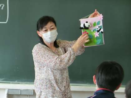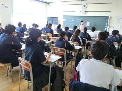 3年生家庭科「フェルトの基礎縫いポケット」の作品作りの説明がありました。デザインを書いてくる宿題が出されていました。去年の3年生も素敵な作品を作っていましたね。