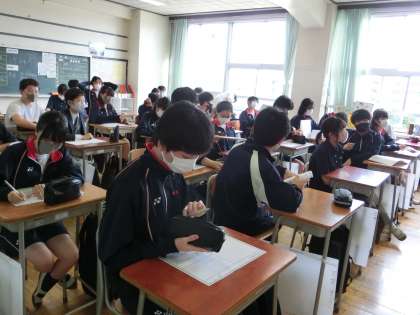 金曜日の弦中12 5月28日(金) 公開日 2021/05/28 更新日 2021/05/28 校長室より 班活動が終わって、修学旅行の事前学習のワークシートが配られていたクラスもいました。 いいね(0)