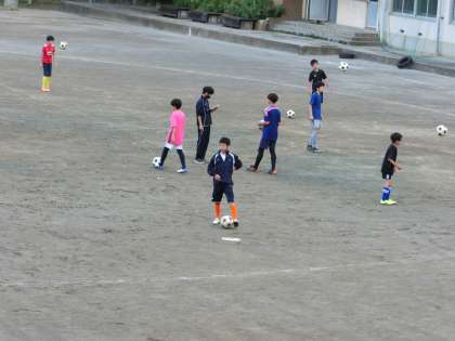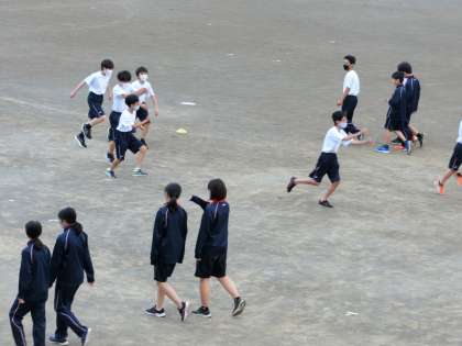 放課後、校庭では陸上部とサッカー部が頑張っていました。