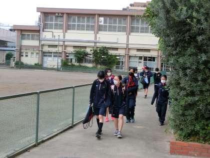 月曜日、元気に登校してくる弦中生。今日も一日頑張りましょう。