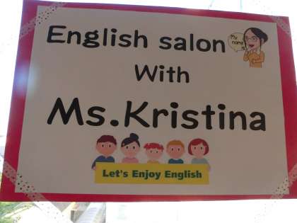 中央階段の踊り場に「イングリッシュサロン」をおきました。ALTのクリスティナ先生がいらしゃるときに、気軽におしゃべりをする場所です。来週17日にまたきます。