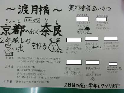 3年生修学旅行に向けて1 6月11日(金) 公開日 2021/06/11 更新日 2021/06/11 校長室より 修学旅行実行委員会を中心に、3年生は準備をはじめています。昨日、校長室にスローガンができたことの報告にきてくれました。素敵な修学旅行だよりも読みました。コロナ禍で、どうなるか不安な中でも楽しみを見つけて頑張っている3年生は素敵です。 いいね(0)