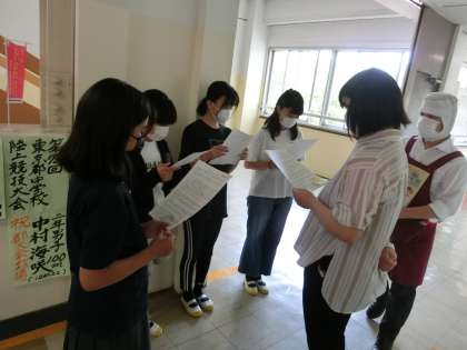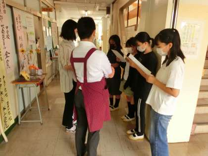 1年生の給食委員のランチタイムスペシャルの日です。まずは、廊下で練習。