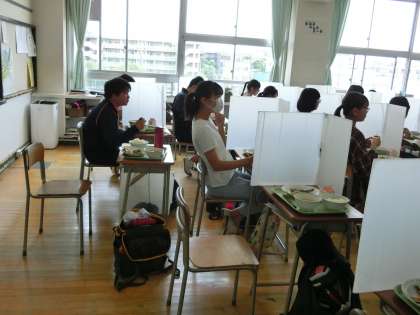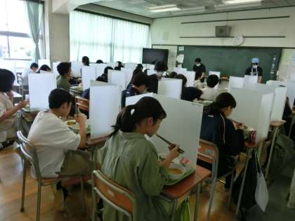 放送がはじまりました。みんなご飯を食べながら一生懸命聞いていました。