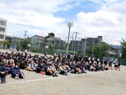 その後、世田谷区では大規模地震が起こった時の学校での対応のガイドラインができました。震度5弱の地震が学校で起きた時に、子どもたちだけで勝手に返すわけにはいきません。そのための引き渡し訓練です。家に帰るまでが訓練ですので、お迎えにきていただいた保護者と一緒に、帰り道、危険個所はないかどうかなど、確認しながら返ってください。