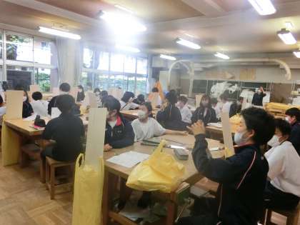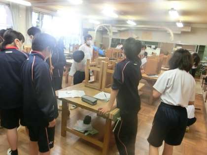 1年生技術の授業。最後はみんなでお掃除中です。次の人たちのために。