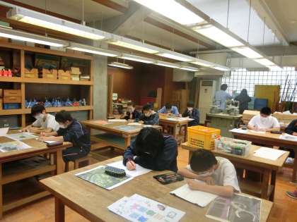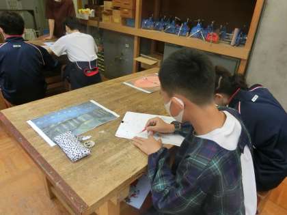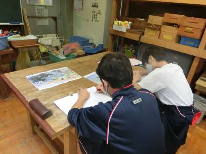 I組美術。絵画模写をやっています。みんな画伯ですね。