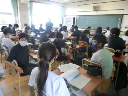 1学期期末考査1日目1 6月18日(金) 公開日 2021/06/18 更新日 2021/06/18 校長室より 1日目の期末考査がはじまりました。1時間目は自習。1年生は、期末テストの受け方についてガイダンスをしています。 中学校生活はじめてのテストで、そわそわ少し落ち着かない様子です。 いいね(0)