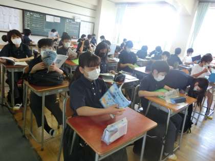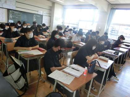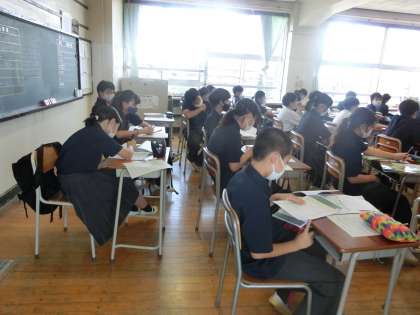 1年生自習時間。問題を出し合ったりしている姿もみられます。