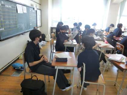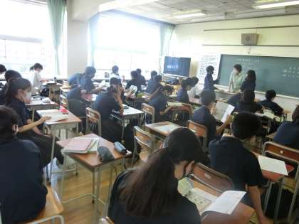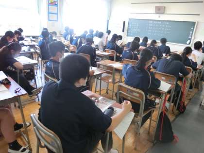 1年生の教室から2年生の教室に移動。シーンと静まりかえった教室。一人一人が集中して私が入ってきたのも気が付かず自習に取り組んでいました。これも成長の1つですね。