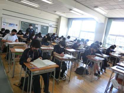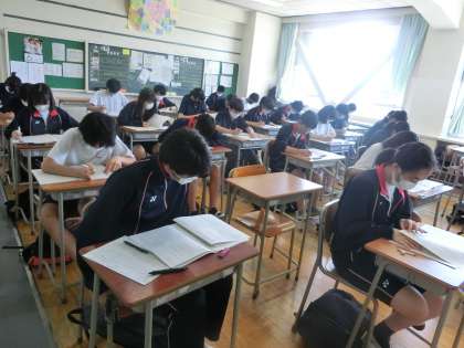1学期期末考査1日目7 6月18日(金) 公開日 2021/06/18 更新日 2021/06/18 校長室より 1時間目国語のテストがはじまりました。15分経過したこ教室を巡回したところ、どのクラスでもみんなが、テストに向かって頑張っていました。 いいね(0)