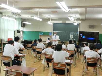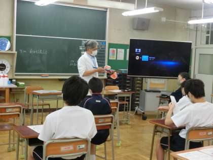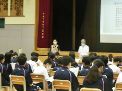 2時間目は1年生が体育館で歯科講話を聴きました。