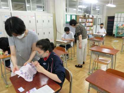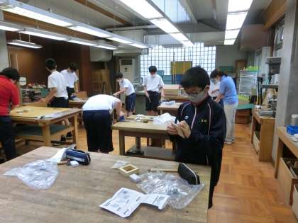 I組の作業と家庭科の授業を見ました。刺繍も木工作品も一生懸命作っていました。