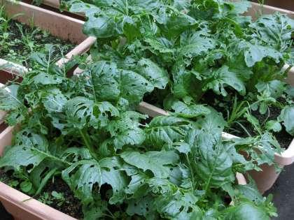 もうすぐ収穫ですね。おいしくて虫に食われている葉っぱもありますね。