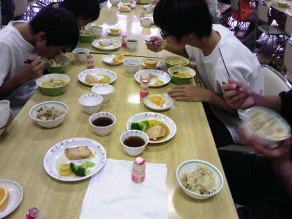2日目の夕食です。ほうとうがでました。私もこの夕食から合流しています。(校長)