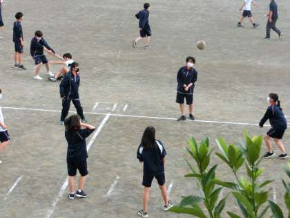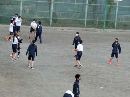 I組国語の授業。そして、給食後は昼休みの校庭です。最近バレーをやっているグループが多くなってきました。