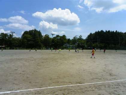 サッカー部は町民グランドにて紅白試合です。暑い中頑張っています。