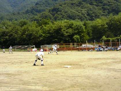 野球部は河口湖北中にて河口湖北中と河口湖南中との練習試合を行います。今は河口湖南中との練習試合です。