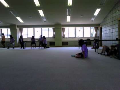 夜の発表に向けての練習で、顧問の先生からのダメ出しに対していろいろなアイデアを出す生徒たち。