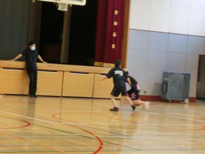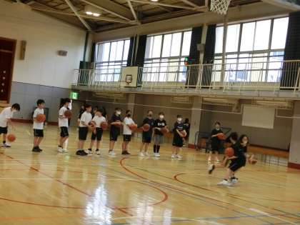バスケット部。まだ試合が残っているみたいですね。3年生も一緒に頑張っています。