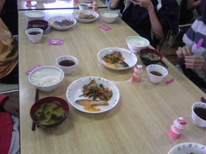 最終日の朝食です。今朝は和食です。みんな疲れ気味で眠そうです。