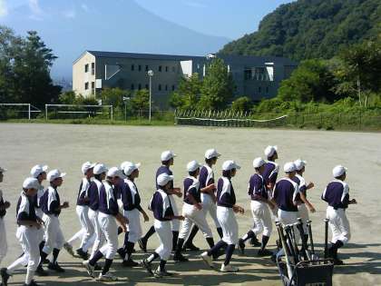最終日の野球部の練習はランニングから始まりました。大きな掛け声で整然と走る姿に感動します。