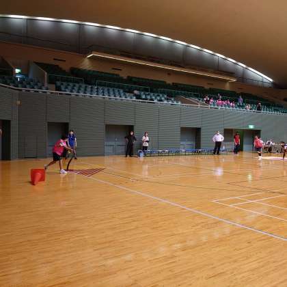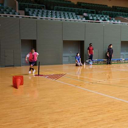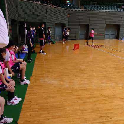 八幡中との試合がはじまりました。みんながんばっています。全員ヒット、塁にでました。