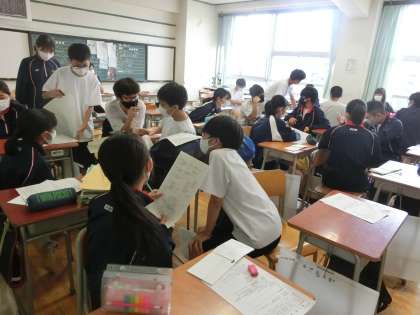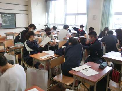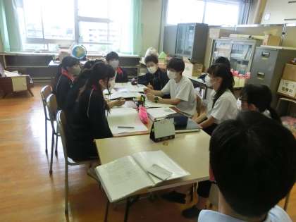美化委員会と生徒会役員では、7月17日(土)に行われる地域清掃「クリーンタウン大作戦」へ向けての話し合いをしてもらいました。