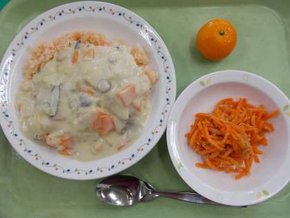 7月6日の給食 公開日 2021/07/07 更新日 2021/07/07 給食 7月6日の献立 ・ドリア風 ・にんじんサラダ ・冷凍みかん 食材産地〔生鮮食品〕 人参:千葉 玉ねぎ:愛知 鶏肉:岩手 いいね(0)