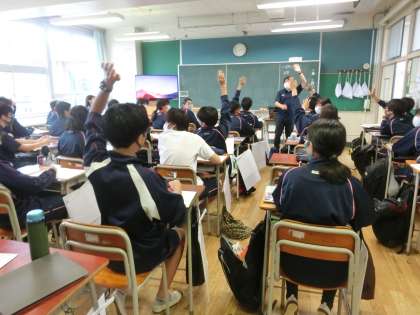 3年生理科、社会科の授業です。