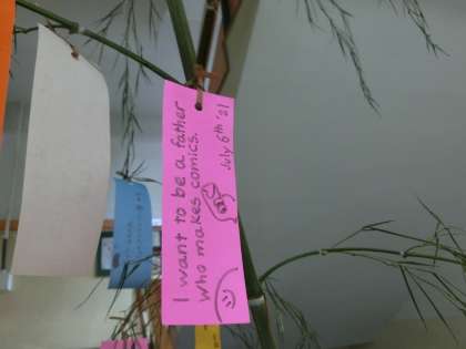 今日も七夕飾りの短冊が増えていました。みんなの願い事がかないますように!!