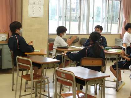 1年生6時間目の音楽の授業では、班で楽しそうにリズム遊びをやっていました。