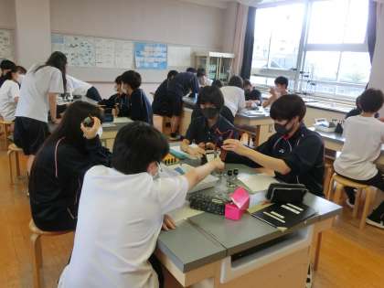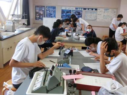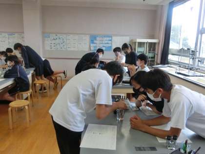 理科の実験中。