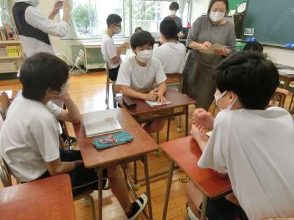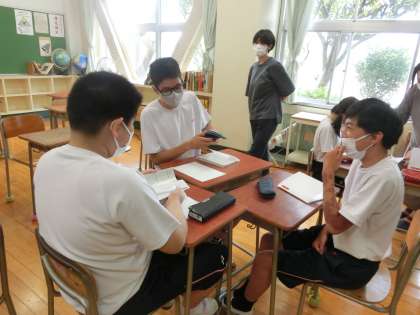 3年I組は修学旅行の話し合いです。とても楽しそうです。