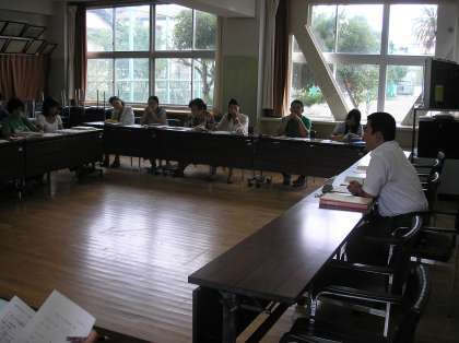 本校は若手教員が多く、ベテラン教員からの熱心な指導を受けながら、力をつけています。それをサポートするために、二学期の始まり、始業式に第2回の校内研修を行いました。講師として、東京都教育庁人事部から山本洋管理主事をお迎えし、OJTの進行状況をとらえ、次へどうつなげていくかという視点から指導を受けました。