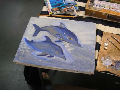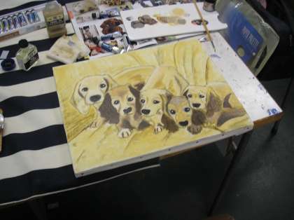 1学期までにデッサン、絵の具での下絵がほぼ終わっていました。