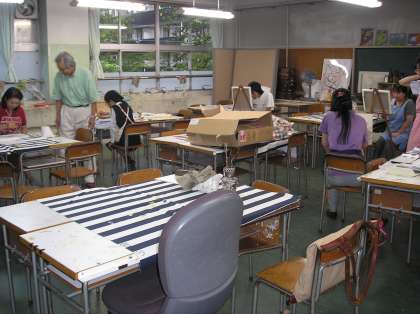 今日は、本格的に絵の具を重ね、10月の発表へ向けて取組んでいました。