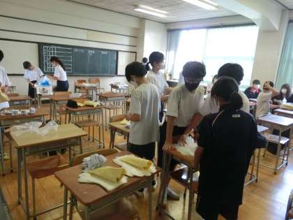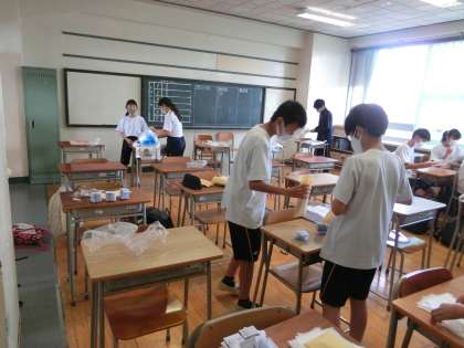 放課後、美化委員会が明日の地域清掃の準備をしてくれました。