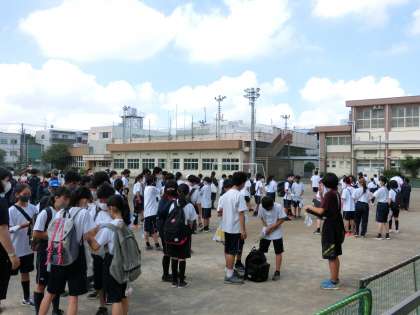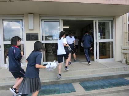 地域清掃4 7月17日(土) 公開日 2021/07/17 更新日 2021/07/17 校長室より ゴミ袋が配布され清掃区域まで各班で移動します。軍手を貸出は生徒会役員の仕事。 さあ、スタート!! いいね(0)