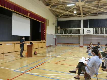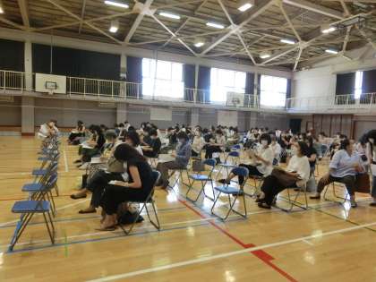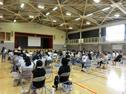 保護者会1 7月17日(土) 公開日 2021/07/19 更新日 2021/07/19 校長室より 3年生は体育館で進路・修学旅行説明会を行いました。まず、学年主任の坂本先生からのお話しです。 いいね(0)