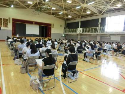 次に進路指導主任の熊谷先生より、進路説明会がありました。