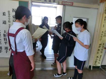 今日の授業16 7月19日(月) 公開日 2021/07/19 更新日 2021/07/19 校長室より 給食委員より、最後のランチタイムスペシャルでした。おいしいなすの見分け方。ためになります。 いいね(0)