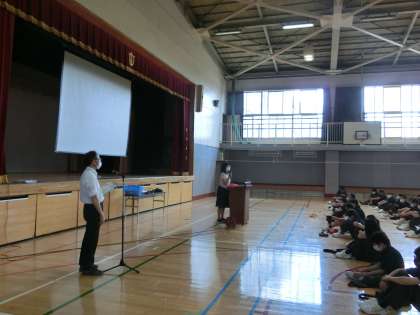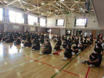 1学期終業式1 7月20日(火) 公開日 2021/07/20 更新日 2021/07/20 校長室より 1学期の終業式。1年生徒I組は体育館で、2・3年生は教室でZoomで参加しました。 まずは、校長先生からのお話しをしました。 いいね(0)